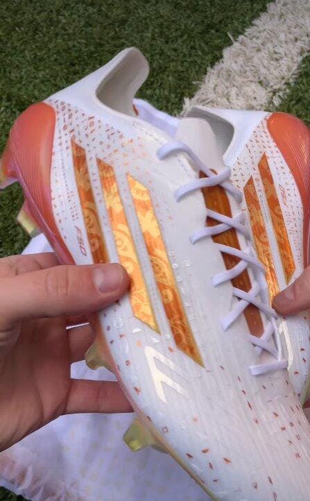Creada para honrar a un jugador que redefinió una era en Anfield, esta F50 exclusiva en blanco puro y marrón arena combina elegancia moderna con raíces históricas. Su diseño rinde homenaje a la travesía de Mohamed Salah, un ícono egipcio convertido en estrella del Liverpool, cuya velocidad devastadora y precisión clínica han marcado capítulos imborrables en la Premier League.